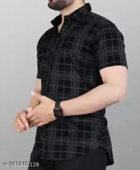 Men's Checked Regular Spread Collar Black Shirts