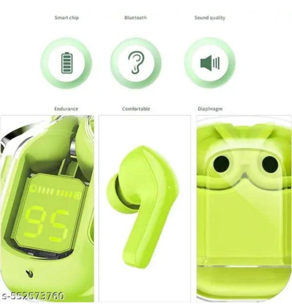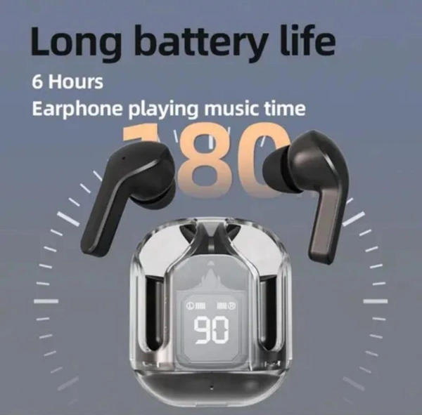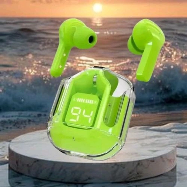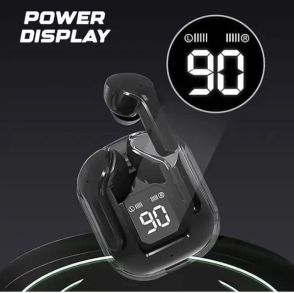 Ultrapods Bluetooth Earbuds With Led Display And Cool Transperant Design